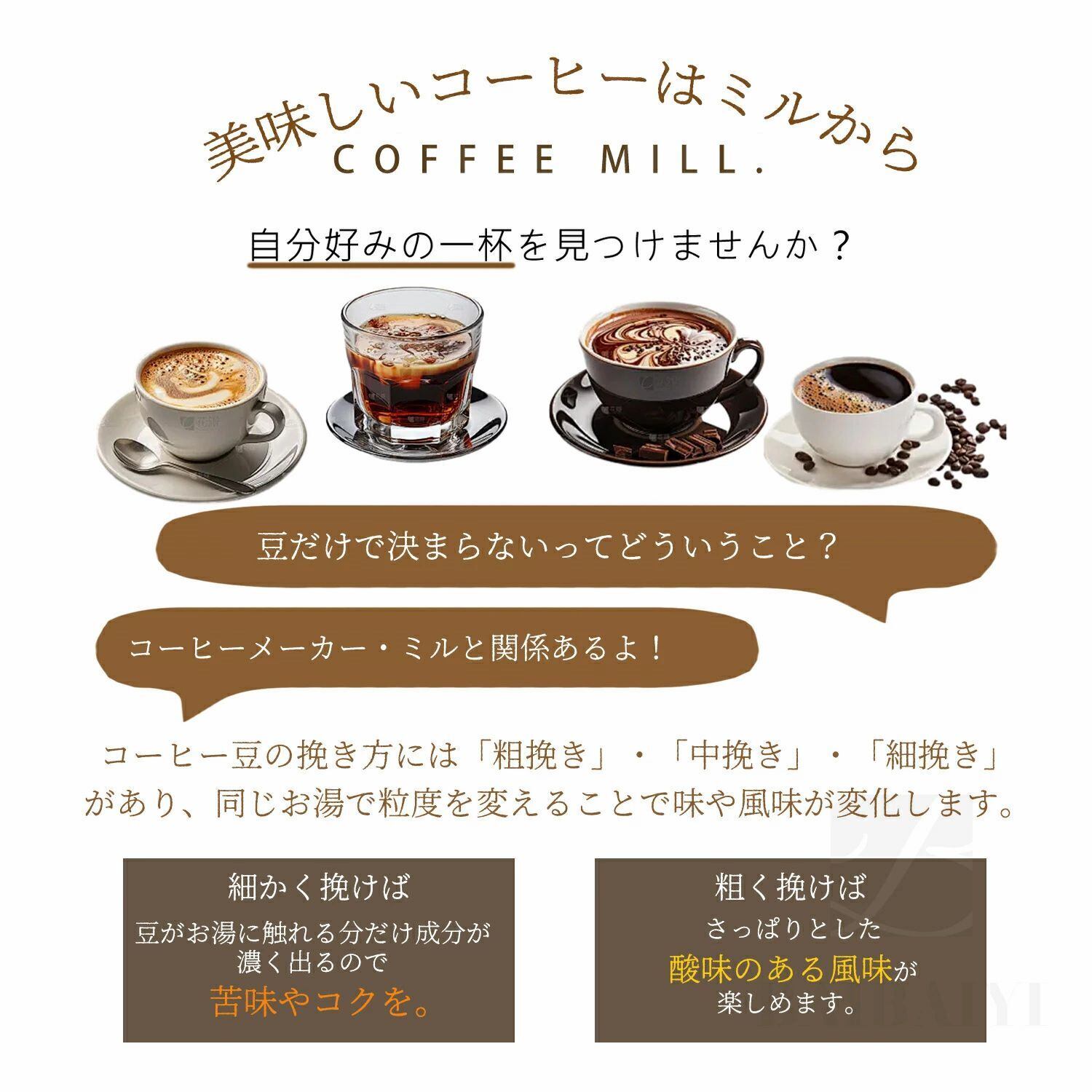 コーヒーミル 電動 臼式 コニカル式 セラミック刃 コードレス 洗える 水洗い アウトドア 充電式 コンパクト 自動 珈琲 コーヒー豆 グラインダー 粗挽き 細挽き 粒度調整 自動停止 珈琲豆 プレゼント 電動コーヒーミル オフィスコーヒー
